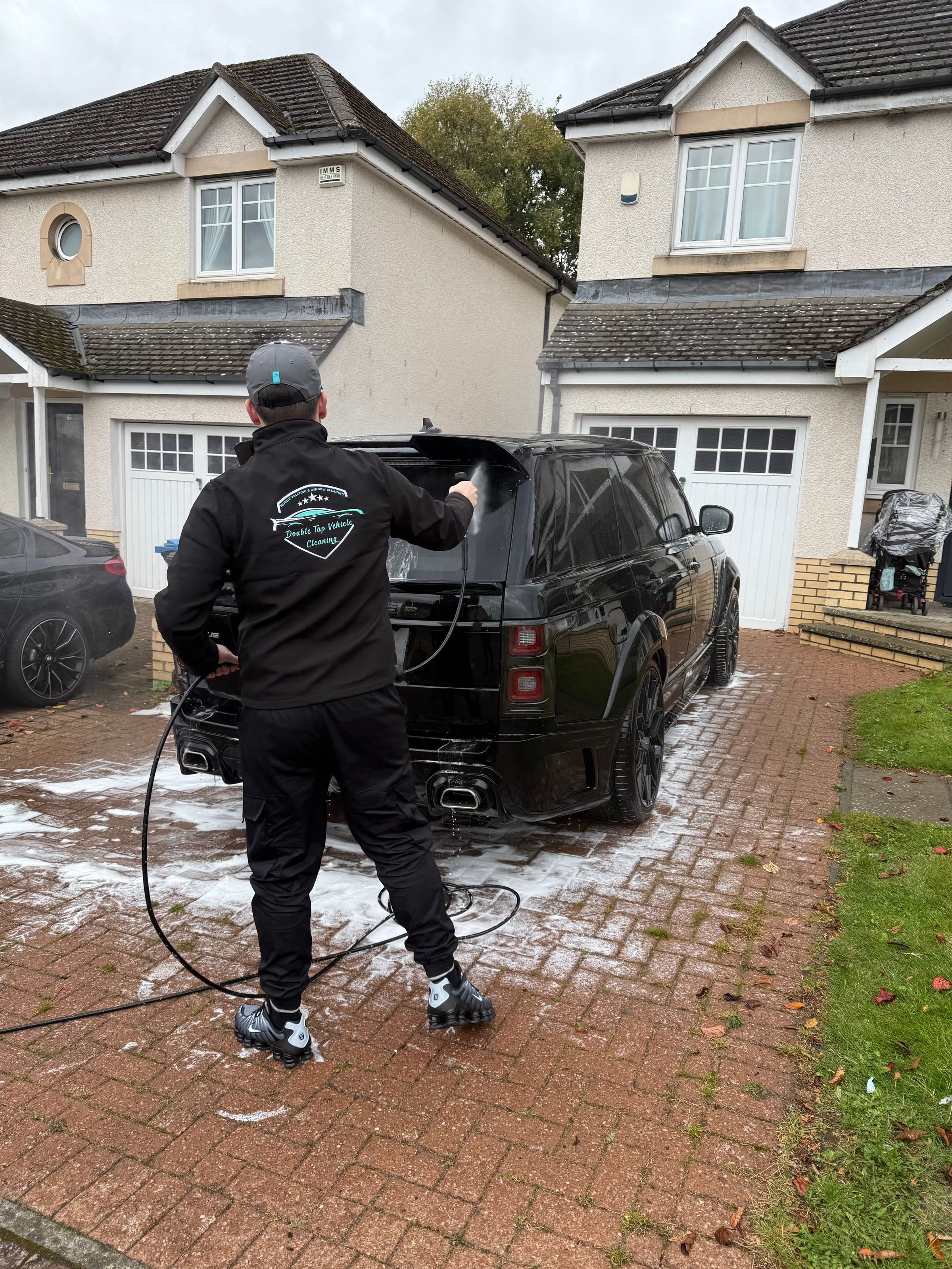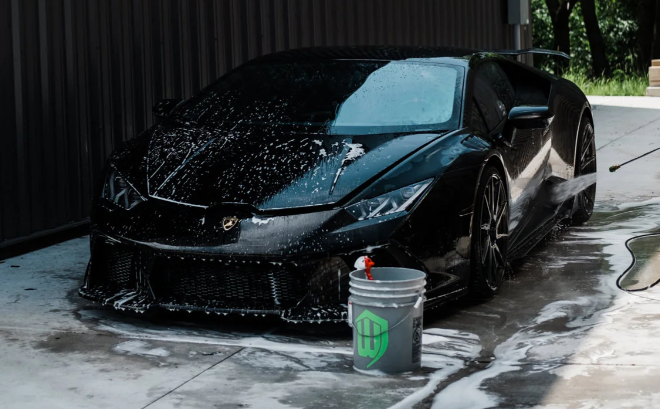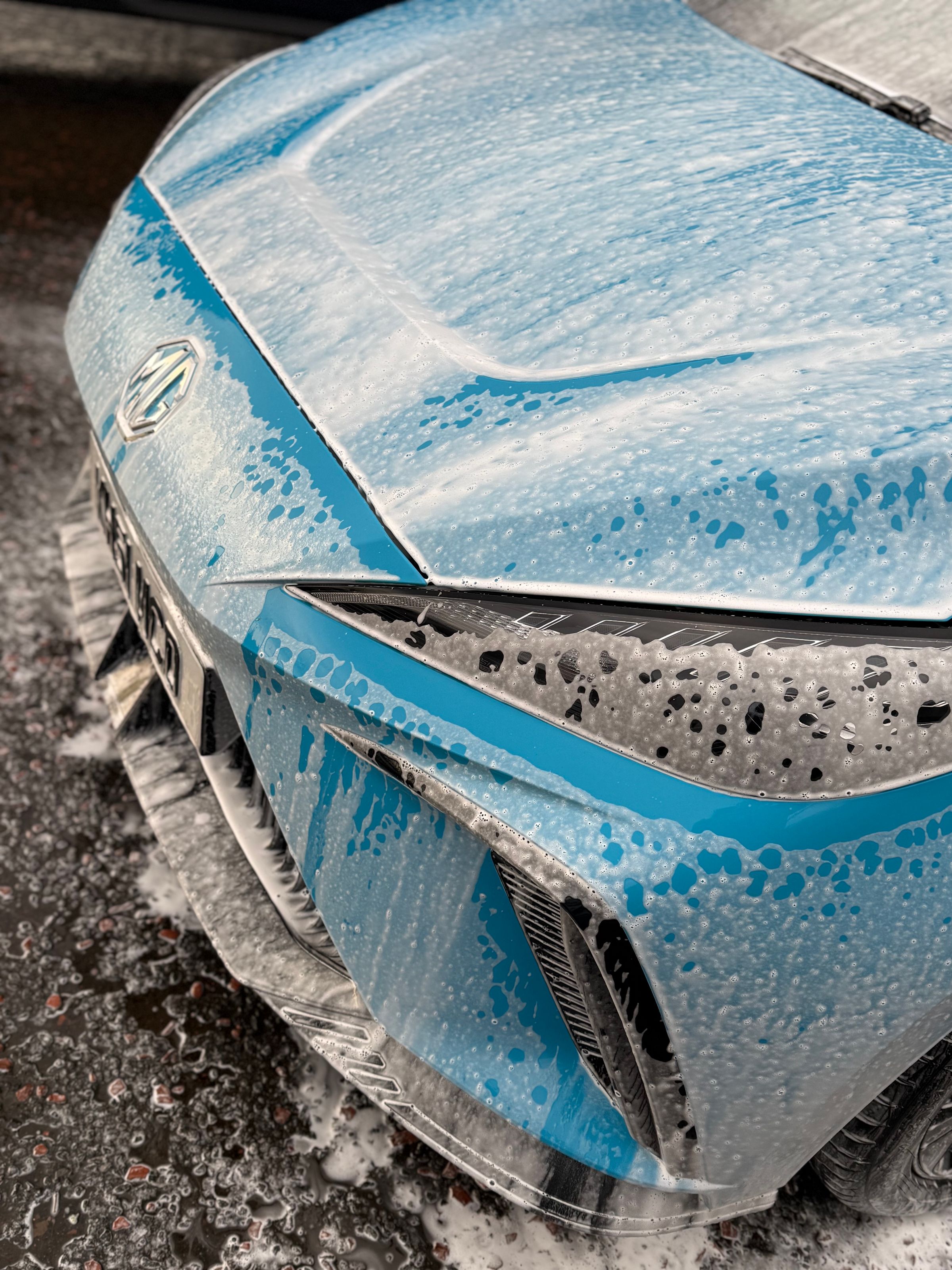 We exterior wash our cars by rinsing off dirt, scrubbing with car-safe soap from top to bottom, cleaning the wheels, rinsing again, and drying with a microfiber towel for a shiny finish.